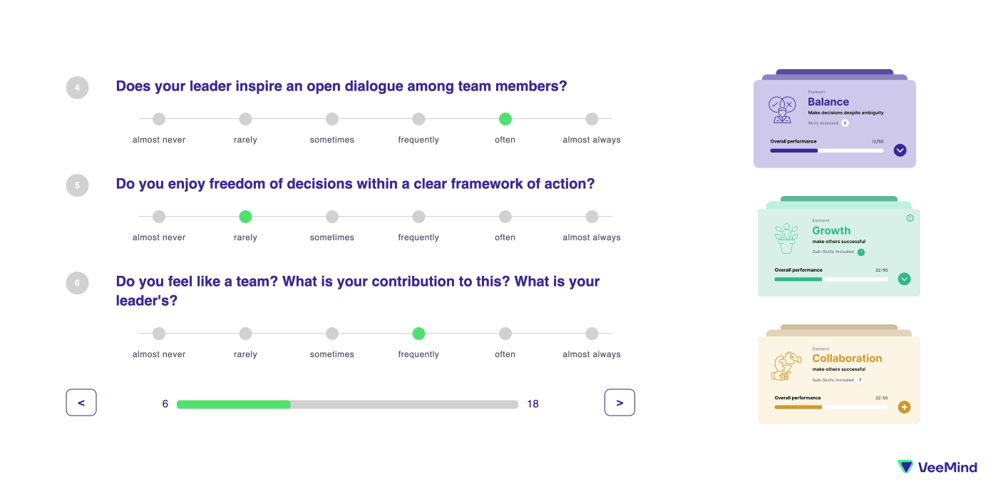 Are you ready to discover the potential of VeeMind and take your leadership skills to the next level? By using VeeMind Nano, you’ll be able to create surveys based on the 6 critical elements of great leadership skills and get feedback from your team.